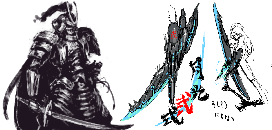 西洋鎧描いてて間違って日本刀持たせたことで思いついた。